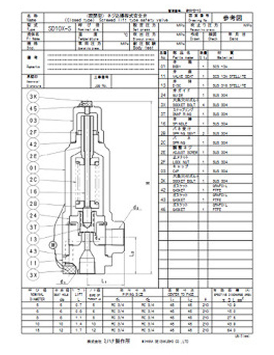 - 安全弁 SCS13A RC3/4(3.5~10MPa)