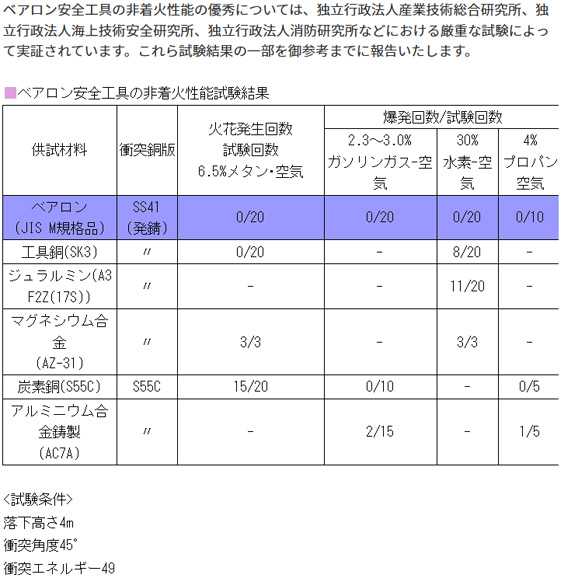 打撃や厳しい摩擦によっても爆発源となる火花が出ません。