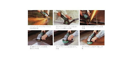 研削作業だけでなく、溝入れ作業や切断作業、仕上げ作業や塗装はがし作業、サビ落とし作業など様々な用途でお使いいただけます。
