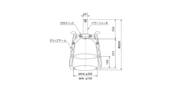 ●爪部はグリップアームの両端に設け、片側はワークに直接装着できる形状とし、他端はボルトを介して引き抜ける構造になっていますので、いろいろな用途にご利用いただけます。