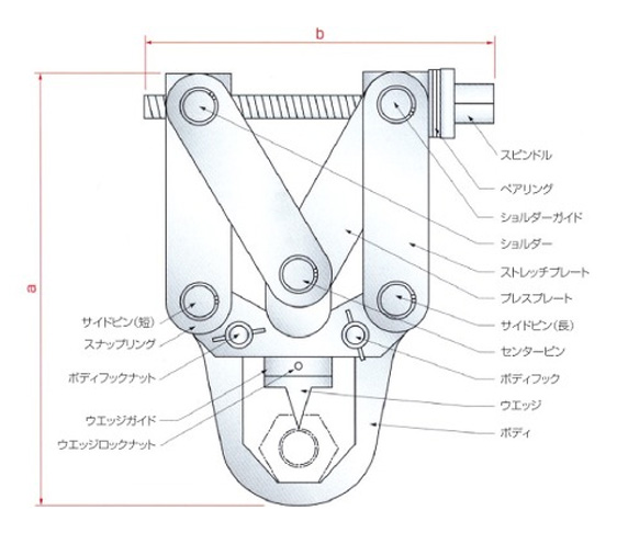 ●セット方法は先ず本体をフランジ面と平行にセットしウエッジの刃先をナット面と直面にしてからスピンドルの頭を手で廻して固定してください。その後ボディフックをセットしてください。