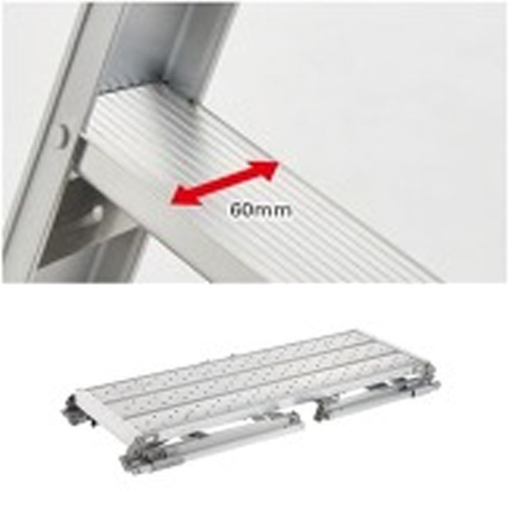 安全に昇降できる幅60mmの広い踏ざんを備えています。