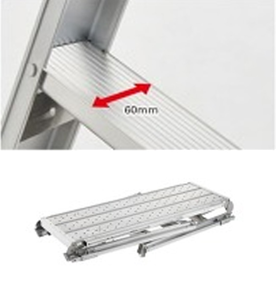 安全に昇降できる幅60mmの広い踏ざんを備えています。