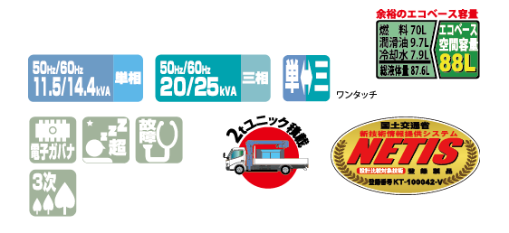 電子ガバナ搭載で回転数調整・周波数調整をワンタッチで行います。
