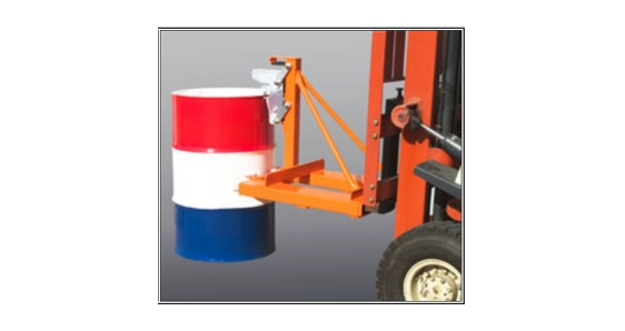 フォークリフトの爪に差し込んでドラム缶を掴むことが出来ます。ドラム缶のツバに合わせて上昇させる事で、自動で下爪・上爪が動きます。作業者はドラム缶に触れずに運搬作業が出来ます。
