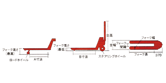 ●ボギー車輪をオプションで取り付けることができます。小さな溝と段差越えに適しています(3tには標準装備)。