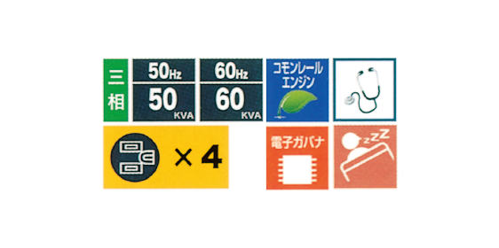 電子ガバナ搭載で回転数調整・周波数調整をワンタッチで行います。