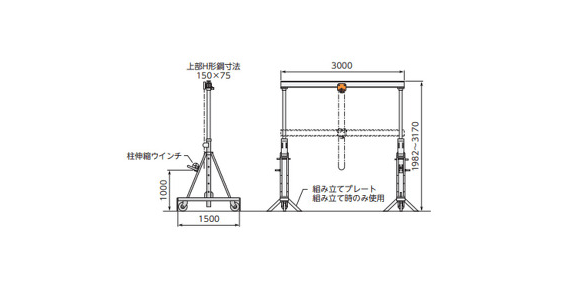 - アルミ製ポータブル門型クレーン(伸縮式)