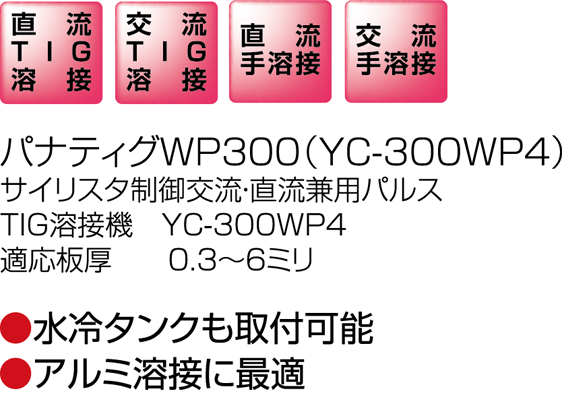 パナソニックの交流・直流両対応のTIG溶接機。空冷式で長時間の溶接作業に対応。