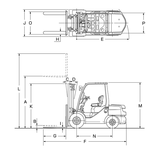 インパネ高さ、ディスプレイ位置の変更、ヘッドガードルーフの形状変更、バックレスト形状見直しなどで、画期的な前方・上方視野を確保。フォーク先端も見やすくなっています。
