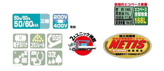 3電源仕様標準装備でエコベース搭載の環境対応仕様。