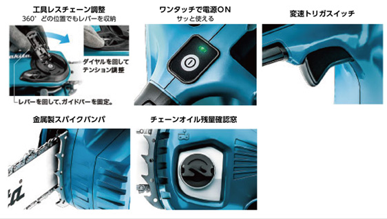 ●定回転制御を搭載。負荷が掛かってもチェーンスピードが落ちにくい