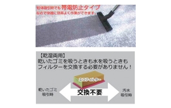 乾いたゴミを吸うときも汚水を吸うときも、都度フィルターを交換する必要がありません。