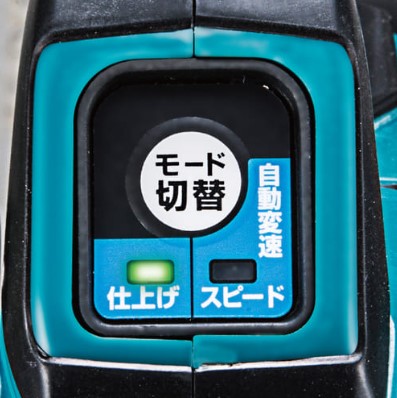 作業に合わせて選べる「新・二刀流」2駆動モード/「仕上げモード」定回転制御により仕上がり重視、低騒音でリフォーム現場や内装工事に。「スピードモード」自動変速で硬い材料はパワフル切断、 軟らかい材料は高速切断。