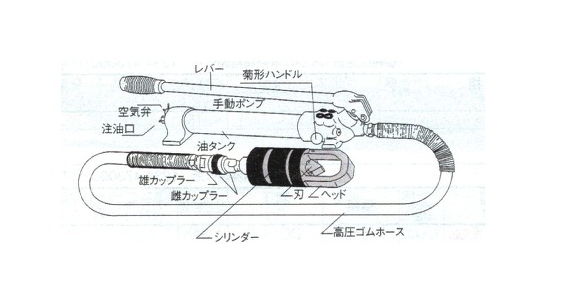 油圧ナッターは、さびついたりして、緩めて外すことができないナットを割って外す防爆工具です。