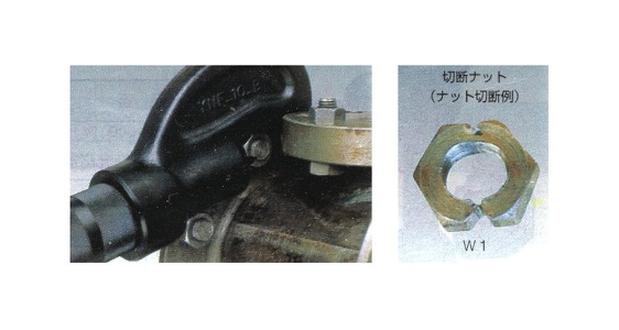 油圧ナッターは、さびついたりして、緩めて外すことができないナットを割って外す防爆工具です。