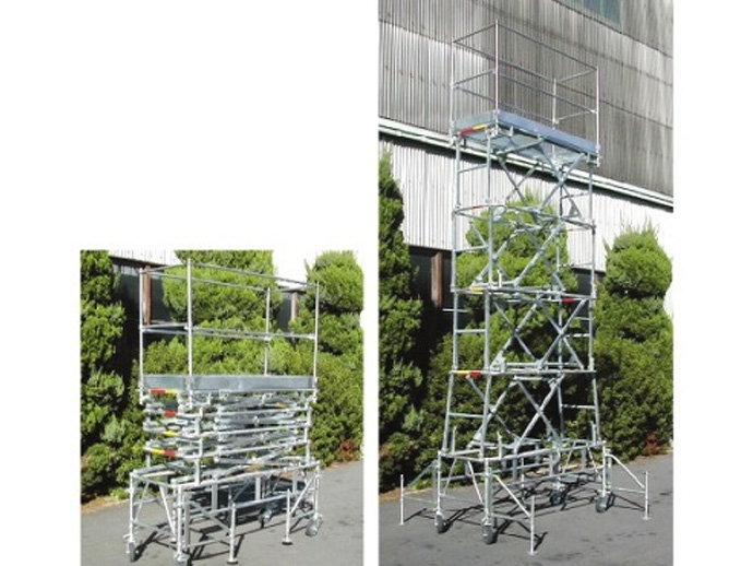 ●優れた安全性 アウトリガーの使用により、優れた安全性を確保しました。6度以上の転倒余裕角度を有しており、誰でも簡単に使用できます。 ●簡単で確実な昇降装置 昇降装置はバネバランス式ですので、作業床は手動で簡単に昇降します。構造が簡単ですので、メンテナンスフリーです。 ●強靭性 仮設工業会にて製品の強度実験を行い、各種性能を確認しています。溶融亜鉛メッキを施しているため耐久性は充分です。