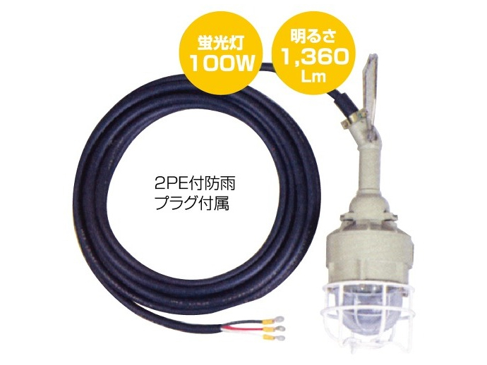屋内・屋外兼用型、定格電圧AC100V、作業用LED投光器です。 水銀灯1000Wクラスの明るさ(当社比) 電源装置一体型、照射角度はワイド、カバーは明るさ重視のクリア(透明)です。 電線の長さは5m、コード先端はポッキンプラグです。 プラグを交換すれば200Vで使用可能です。