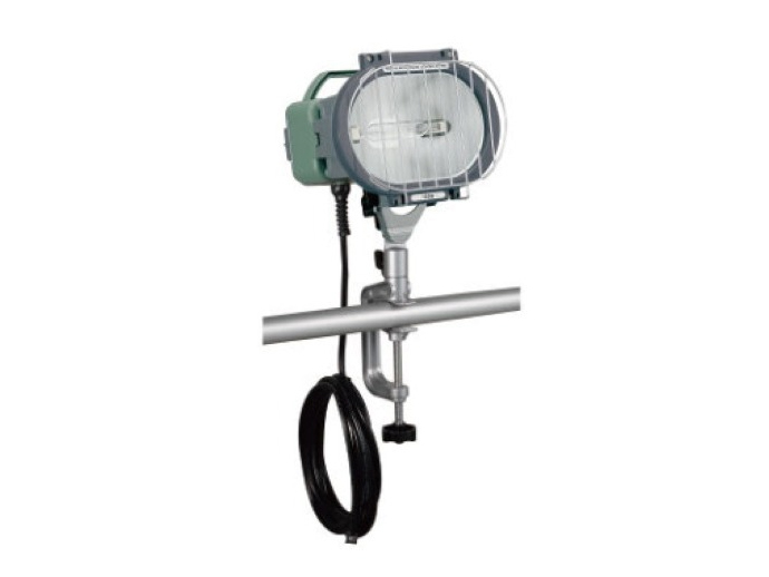 全4タイプからお選びいただけるバリエーションをご用意しました。 完全防雨型の安全構造だから、屋外のあらゆる現場に、仮設・固定・移動灯として使用できます。 バイスでしっかり固定可能な有効締付100mm。 50/60Hz兼用電子安定器内蔵。 通電ランプと点灯スイッチ付(背面)。 安定器一体型のコンパクトボディ。 物体認識が容易な白色光の長寿命150Wメタルハライドランプ。[全光束:14,500lm(ルーメン)定格寿命:14,000時間] AC100V電源でどこでも使用できます。