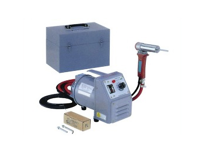 特徴 ●長時間の連続作業に使用できます。 ●潤滑油が不要ですので、お手入れの手間が軽減され、熱風中に油を含みません。 ●モーター、ロータリーブロアー、変圧器、配電盤が小型の本体にまとまっているので持ち運びに便利です。 ●コンデンサーモーターを使用し、機動スイッチがないので、故障が少なく製品命が長いです。 ●溶接ガンは軽量で、高温部にステンレス鋼を使用し、長期の使用に耐えます。 ●FLガンの胴体パイプとエアコックはガングリップにより完全に絶縁されていますので手元のエアコックより感電することはありません。 ●電熱ボビンの取替が簡単にできます。