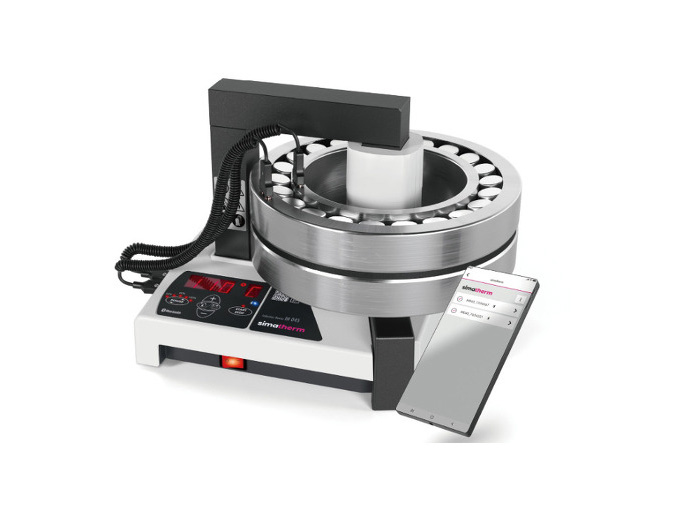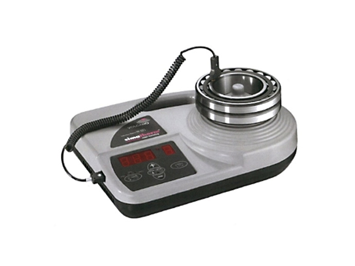 ベアリングやリング類の内輪を誘導電流によって、迅速かつ均一に加熱し、内輪系を熱膨張によって拡散させ、スムーズに挿入させますので、プレスや木工ハンマーなど力による挿入に起きがちな、打コンやワレを起こす心配がありませんし、機器本体は作動中でも温度上昇することが少なく、安全に作業ができます。 スイス製のポータブルベアリングヒーターIH025。 今までのベアリングヒーターは重く、持ち運びには不便でしたが、IH025はわずか3.5㎏で現場作業にぴったりです。 またベアリングを円錐部に乗せるだけでバーにかける必要がないので、作業効率も改善されます。 重量10㎏で内径20㎜から外径160㎜までのリングが加熱対象です。