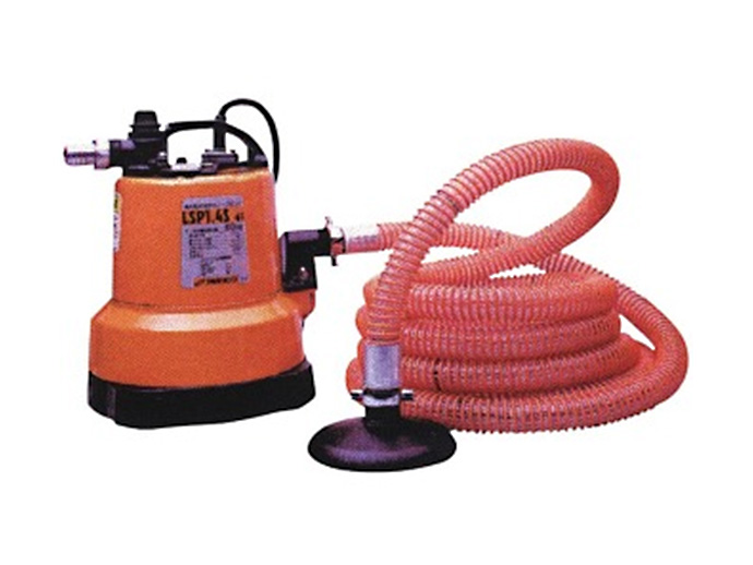 ●特長 軽量コンパクトな低水型位排水用ポンプです。 独自のシール弁座と新機構のスイング弁により、いったん吸引した水は逆流しません。 独自の底板構造は最低水位1mmまで排水可能です。 ゴムラバー付き底板はFRP槽にも使用できます。 ●用途 一般建築工事の床水排水用、マンホール・ピットの低水残水排水用、受・給水槽の低水残水排水用、一般的残水排水用