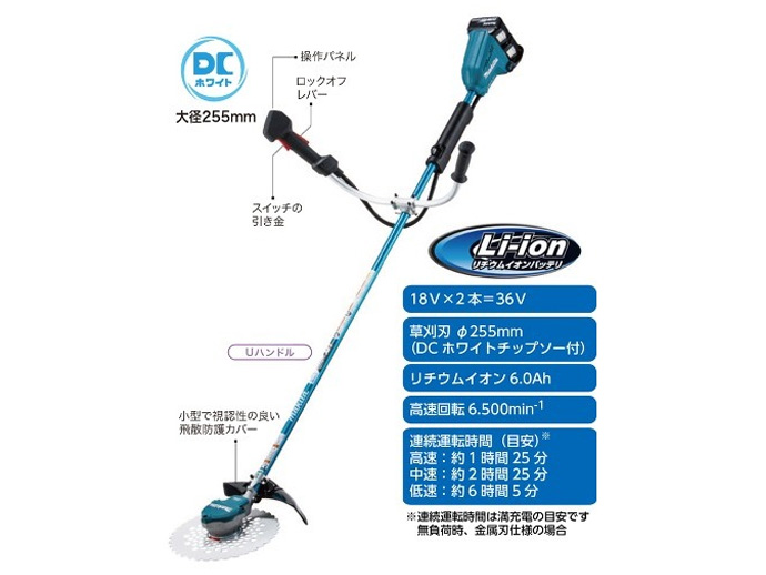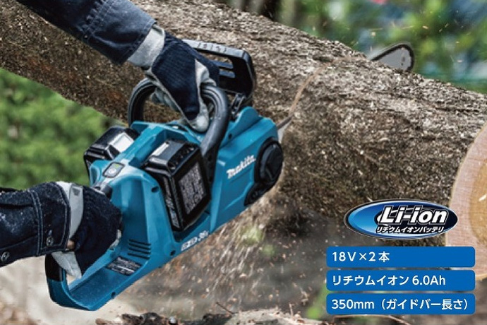外側ロータが回転するアウタロータ式ブラシレスモーターを搭載しており、高トルクを実現しています。 18Vバッテリー2本で36V仕様となり、ダイレクトドライブ方式でギアやクラッチを使わずにチェーンを直接回転させます。 最大1,200m/分のチェーンスピードでエンジン式並の高速切断が可能です。