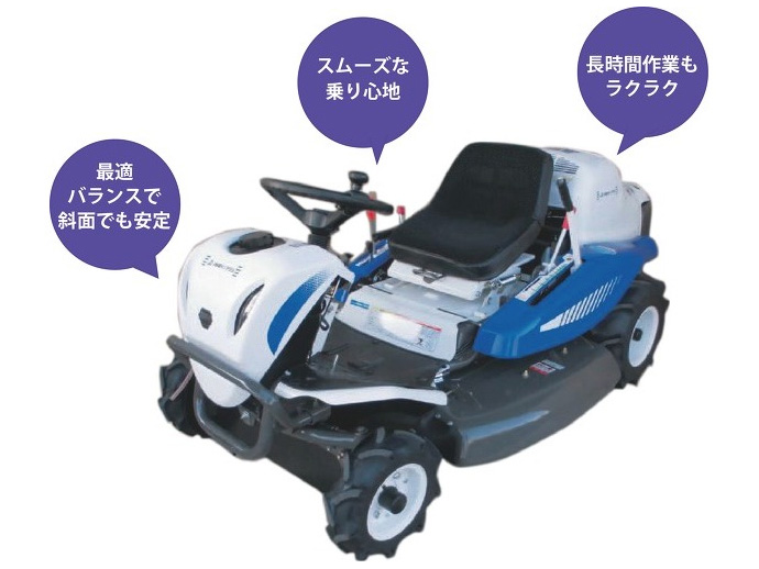 最適なバランス設計により、斜面でも安心して作業ができ、スムーズな乗り心地を提供します。 長時間の作業でも疲れにくく、広い面積を乗ったまま楽に刈ることが可能です。 また、ホースを繋げて楽々洗浄できる、デッキ洗浄機能も備えています。